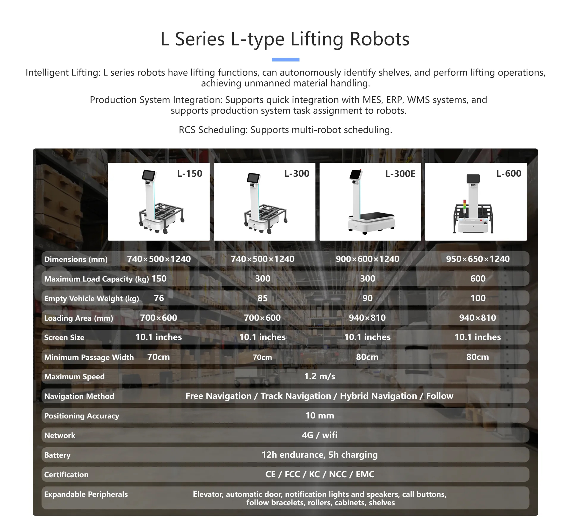 The L Series Industrial Smart Lifting Robot is a next-generation material-handling solution built to optimize logistics, warehousing, and manufacturing workflows. Designed for rapid deployment, it sets up in minutes and delivers automated lifting, transport, and shelf-handling functions with exceptional reliability.