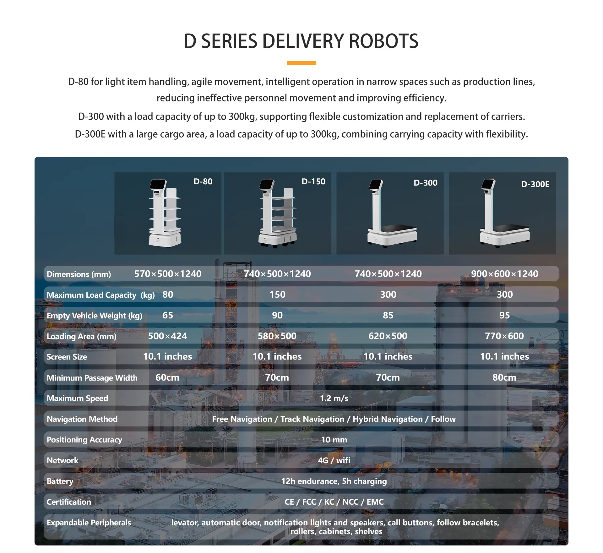 The D Series meets CE, FCC, KC, NCC, and EMC certifications for global compliance. Already exported to over 50 countries and trusted by 1,500+ enterprises, it is a proven solution for logistics, industrial production, and smart warehousing.
