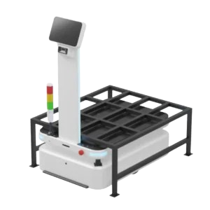 Autonomous mobile robot (AMR) designed for heavy payload transport in warehouses.