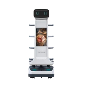 Multi-tiered autonomous delivery robot designed to serve food and drinks in restaurants.